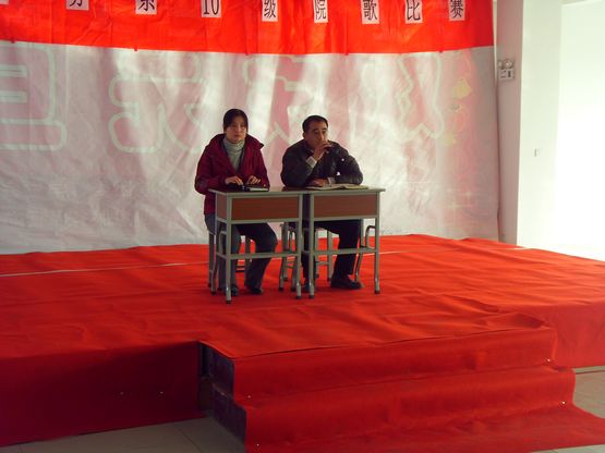 会后,我系举行了2010级新生院歌比赛。各班同学以嘹亮的歌声唱响了院歌,展现了当代学生的积极上进的精神风貌。最终,10大3班、10大2班、1006班分获前三名。(陈瑜)
